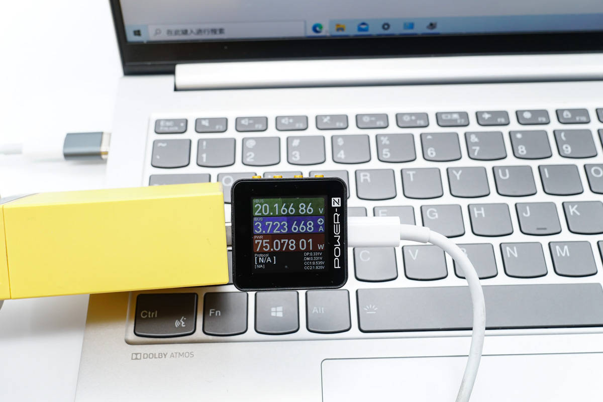 Nan menm senaryo a, Lenovo Xiaoxin Pro 14 2021 chaje ak yon pouvwa 20.16V 3.72A 75.07W.
