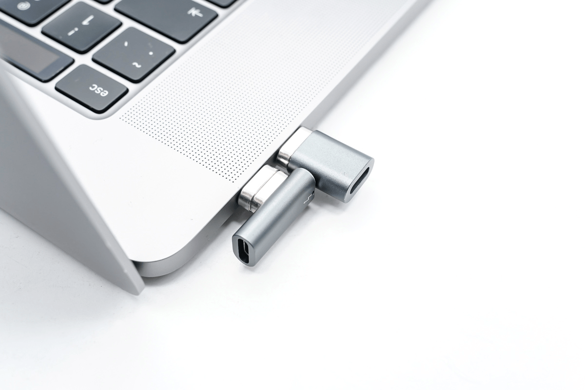 Fen nan opinyon nan adaptè a adopte yon pò USB-C fi pou konekte câbles.