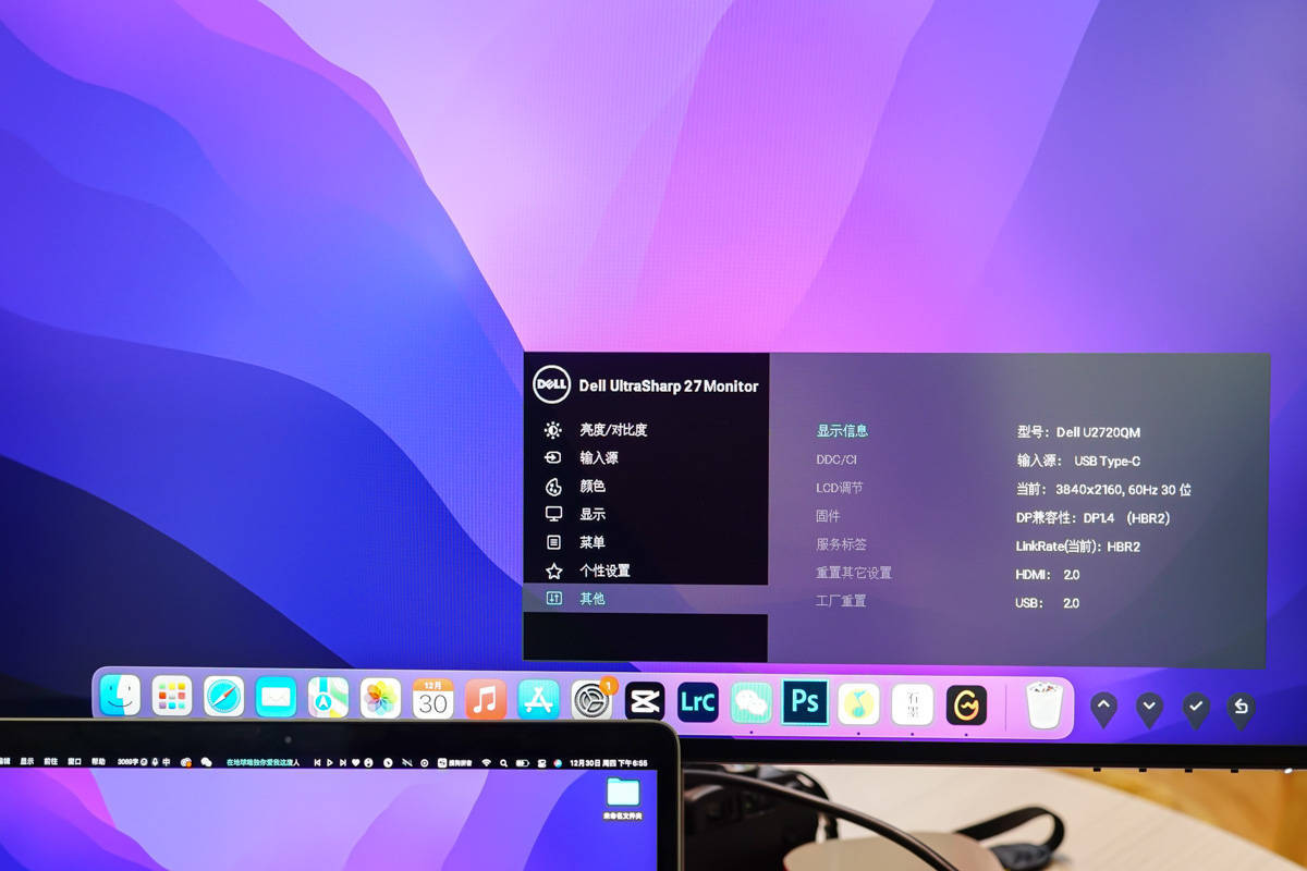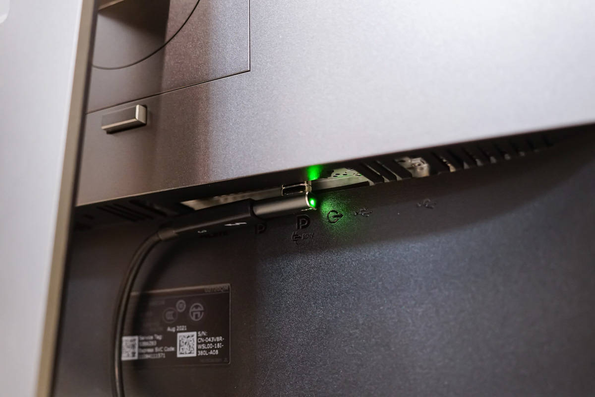 Apre sa, ann gade nan transmisyon videyo a, konekte kab done Thunderbolt 3 la ak monitè Dell U2720QM 4K a atravè adaptè a.